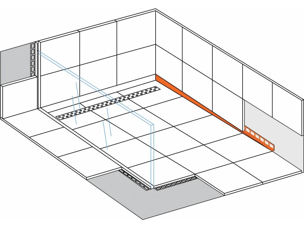 Profilul de conectare la perete este utilizat ca o tranziție laterală perfectă de la suprafețele înclinate la peretele adiacent, profilul din oțel inoxidabil periat fiind disponibil în versiunea stânga sau dreapta. Panta de aproximativ 2% corespunde pantelor obișnuite ale cabinelor de duș.